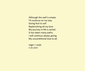 Some call me son, brother, godfather, cousin, uncle, writer, author, veteran, and friend. That may be true, but mostly I am me - a unique human being who has run the race of life through many different forests, down many roaring rivers and along some tangled paths. All in all it has been a good journey of growth and expansion of self. I am a lover of family, animals, food, laughs, poetry, books, compassionate people and chasing the light. My first journey into writing is Quiet Thoughts: Written Reflections. It is a book of poems and reflections - a small flicker of light into my life journey. I currently reside in Emmaus, PA and enjoy all that the Lehigh Valley has to offer. View all posts by rogerrcoyle