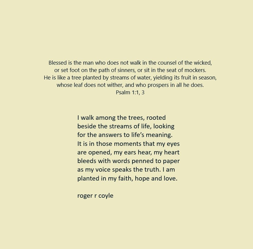 Some call me son, brother, godfather, cousin, uncle, writer, author, veteran, and friend. That may be true, but mostly I am me - a unique human being who has run the race of life through many different forests, down many roaring rivers and along some tangled paths. All in all it has been a good journey of growth and expansion of self. I am a lover of family, animals, food, laughs, poetry, books, compassionate people and chasing the light. My first journey into writing is Quiet Thoughts: Written Reflections. It is a book of poems and reflections - a small flicker of light into my life journey. I currently reside in Emmaus, PA and enjoy all that the Lehigh Valley has to offer. View all posts by rogerrcoyle