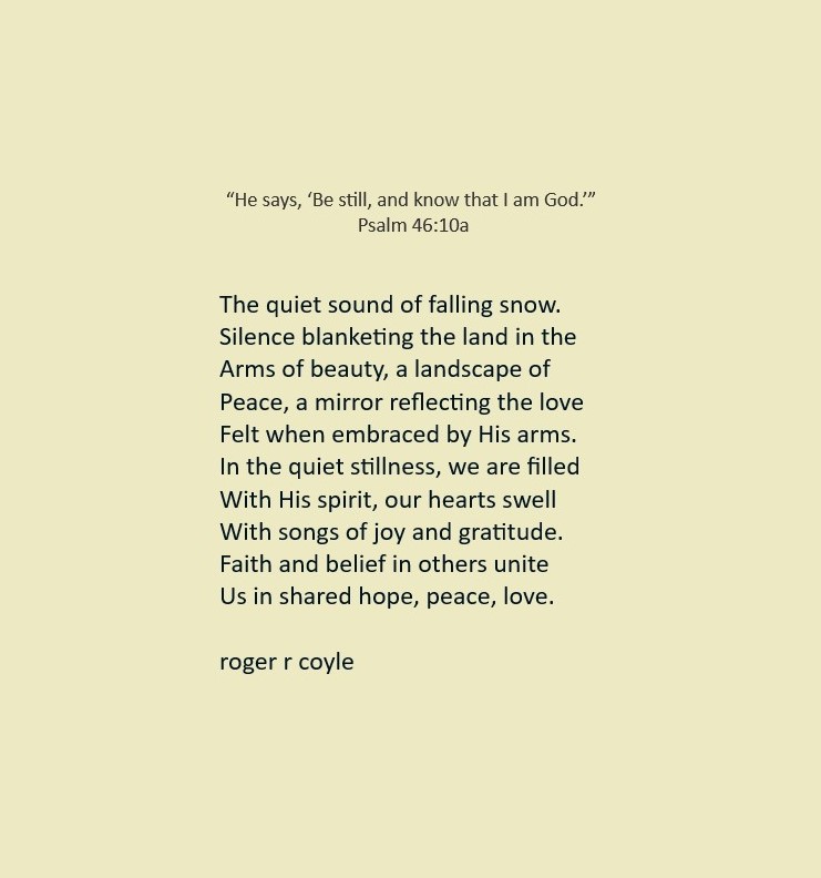 Some call me son, brother, godfather, cousin, uncle, writer, author, veteran, and friend. That may be true, but mostly I am me - a unique human being who has run the race of life through many different forests, down many roaring rivers and along some tangled paths. All in all it has been a good journey of growth and expansion of self. I am a lover of family, animals, food, laughs, poetry, books, compassionate people and chasing the light. My first journey into writing is Quiet Thoughts: Written Reflections. It is a book of poems and reflections - a small flicker of light into my life journey. I currently reside in Emmaus, PA and enjoy all that the Lehigh Valley has to offer. View all posts by rogerrcoyle
