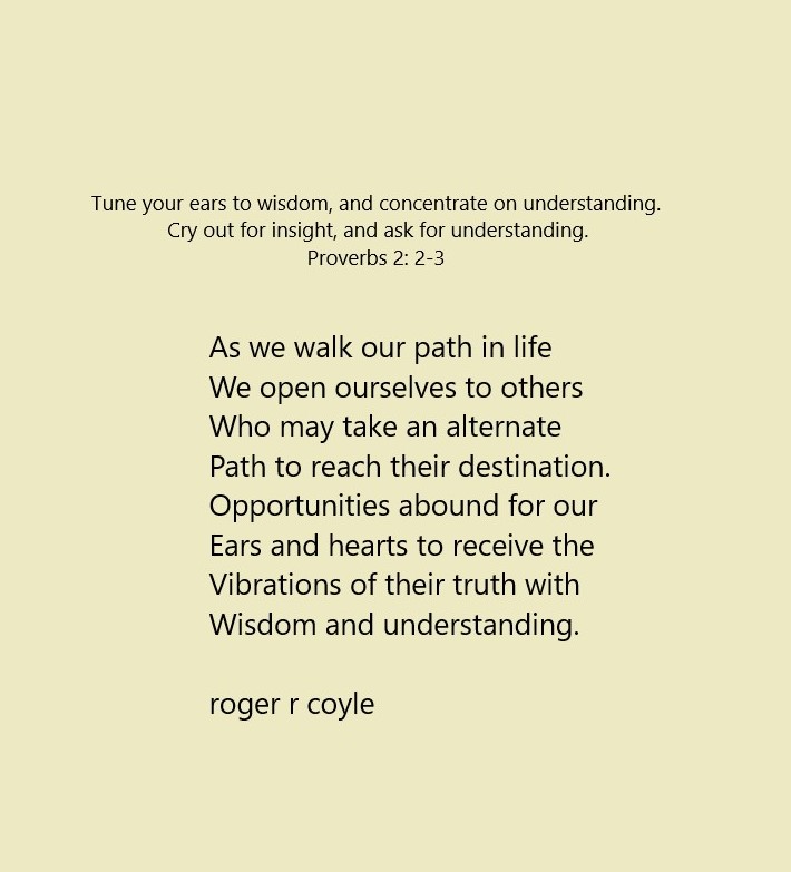 Some call me son, brother, godfather, cousin, uncle, writer, author, veteran, and friend. That may be true, but mostly I am me - a unique human being who has run the race of life through many different forests, down many roaring rivers and along some tangled paths. All in all it has been a good journey of growth and expansion of self. I am a lover of family, animals, food, laughs, poetry, books, compassionate people and chasing the light. My first journey into writing is Quiet Thoughts: Written Reflections. It is a book of poems and reflections - a small flicker of light into my life journey. I currently reside in Emmaus, PA and enjoy all that the Lehigh Valley has to offer. View all posts by rogerrcoyle