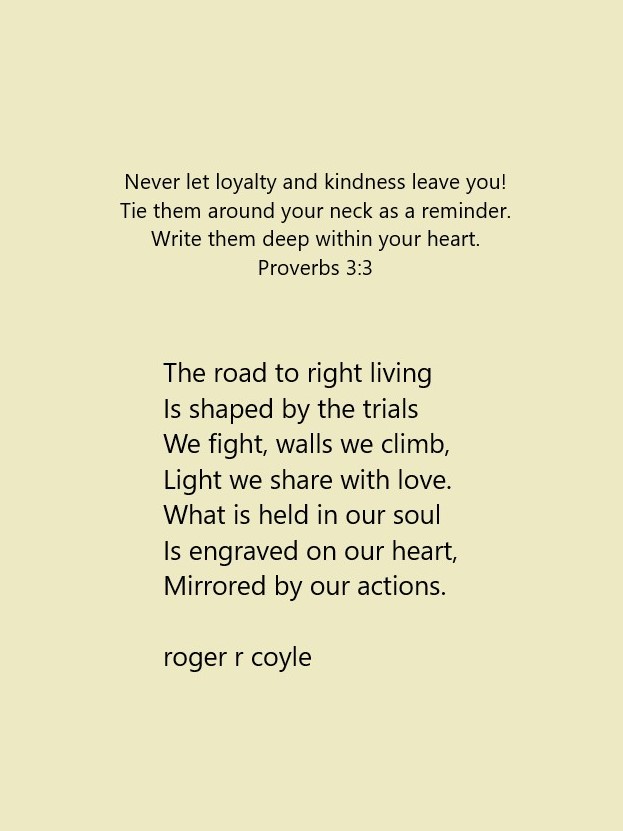 Some call me son, brother, godfather, cousin, uncle, writer, author, veteran, and friend. That may be true, but mostly I am me - a unique human being who has run the race of life through many different forests, down many roaring rivers and along some tangled paths. All in all it has been a good journey of growth and expansion of self. I am a lover of family, animals, food, laughs, poetry, books, compassionate people and chasing the light. My first journey into writing is Quiet Thoughts: Written Reflections. It is a book of poems and reflections - a small flicker of light into my life journey. I currently reside in Emmaus, PA and enjoy all that the Lehigh Valley has to offer. View all posts by rogerrcoyle