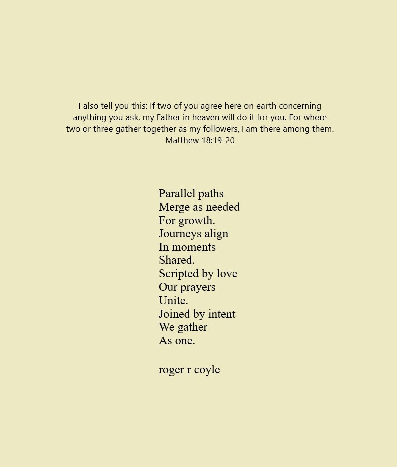 Some call me son, brother, godfather, cousin, uncle, writer, author, veteran, and friend. That may be true, but mostly I am me - a unique human being who has run the race of life through many different forests, down many roaring rivers and along some tangled paths. All in all it has been a good journey of growth and expansion of self. I am a lover of family, animals, food, laughs, poetry, books, compassionate people and chasing the light. My first journey into writing is Quiet Thoughts: Written Reflections. It is a book of poems and reflections - a small flicker of light into my life journey. I currently reside in Emmaus, PA and enjoy all that the Lehigh Valley has to offer. View all posts by rogerrcoyle