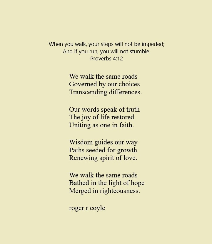 Some call me son, brother, godfather, cousin, uncle, writer, author, veteran, and friend. That may be true, but mostly I am me - a unique human being who has run the race of life through many different forests, down many roaring rivers and along some tangled paths. All in all it has been a good journey of growth and expansion of self. I am a lover of family, animals, food, laughs, poetry, books, compassionate people and chasing the light. My first journey into writing is Quiet Thoughts: Written Reflections. It is a book of poems and reflections - a small flicker of light into my life journey. I currently reside in Emmaus, PA and enjoy all that the Lehigh Valley has to offer. View all posts by rogerrcoyle