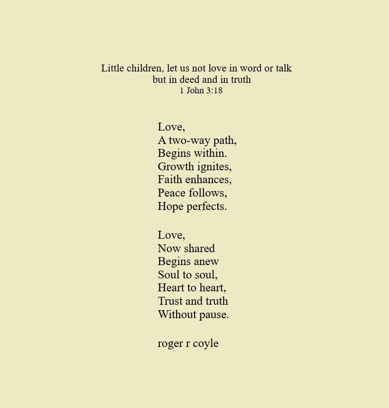 Some call me son, brother, godfather, cousin, uncle, writer, author, veteran, and friend. That may be true, but mostly I am me - a unique human being who has run the race of life through many different forests, down many roaring rivers and along some tangled paths. All in all it has been a good journey of growth and expansion of self. I am a lover of family, animals, food, laughs, poetry, books, compassionate people and chasing the light. My first journey into writing is Quiet Thoughts: Written Reflections. It is a book of poems and reflections - a small flicker of light into my life journey. I currently reside in Emmaus, PA and enjoy all that the Lehigh Valley has to offer. View all posts by rogerrcoyle
