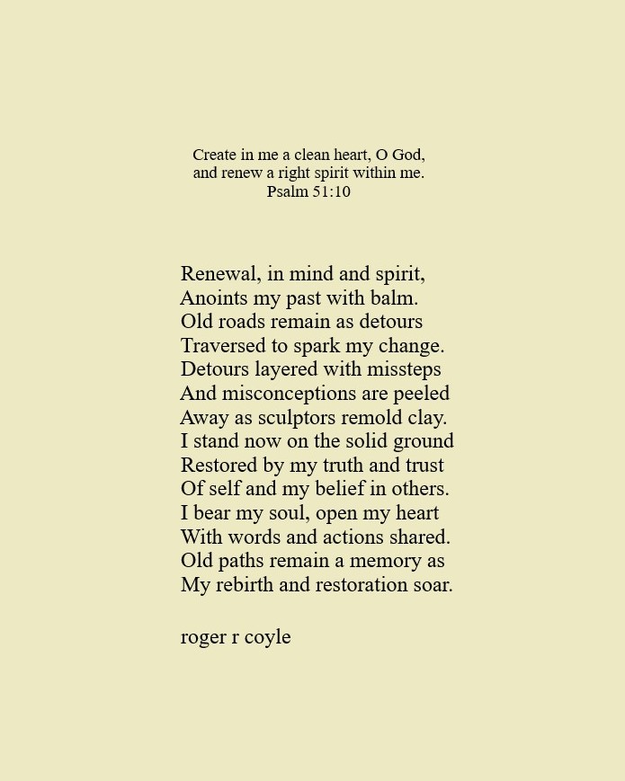 Some call me son, brother, godfather, cousin, uncle, writer, author, veteran, and friend. That may be true, but mostly I am me - a unique human being who has run the race of life through many different forests, down many roaring rivers and along some tangled paths. All in all it has been a good journey of growth and expansion of self. I am a lover of family, animals, food, laughs, poetry, books, compassionate people and chasing the light. My first journey into writing is Quiet Thoughts: Written Reflections. It is a book of poems and reflections - a small flicker of light into my life journey. I currently reside in Emmaus, PA and enjoy all that the Lehigh Valley has to offer. View all posts by rogerrcoyle
