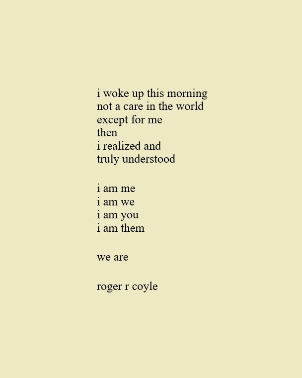 Some call me son, brother, godfather, cousin, uncle, writer, author, veteran, and friend. That may be true, but mostly I am me - a unique human being who has run the race of life through many different forests, down many roaring rivers and along some tangled paths. All in all it has been a good journey of growth and expansion of self. I am a lover of family, animals, food, laughs, poetry, books, compassionate people and chasing the light. My first journey into writing is Quiet Thoughts: Written Reflections. It is a book of poems and reflections - a small flicker of light into my life journey. I currently reside in Emmaus, PA and enjoy all that the Lehigh Valley has to offer. View all posts by rogerrcoyle