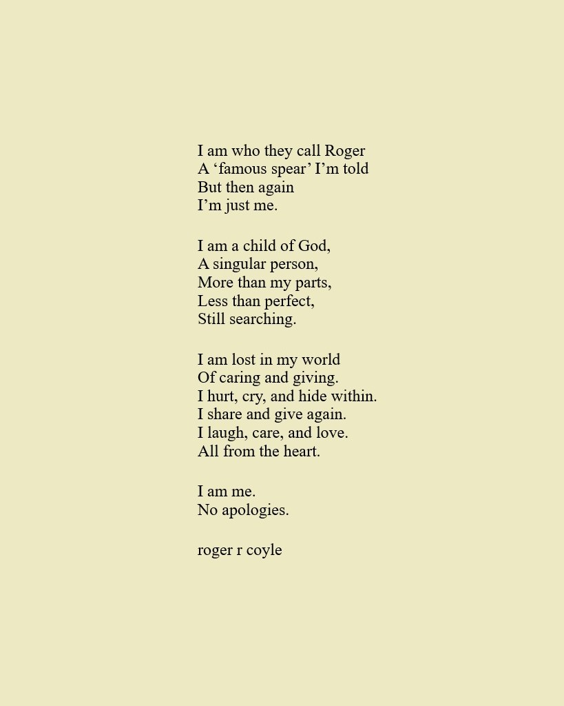 Some call me son, brother, godfather, cousin, uncle, writer, author, veteran, and friend. That may be true, but mostly I am me - a unique human being who has run the race of life through many different forests, down many roaring rivers and along some tangled paths. All in all it has been a good journey of growth and expansion of self. I am a lover of family, animals, food, laughs, poetry, books, compassionate people and chasing the light. My first journey into writing is Quiet Thoughts: Written Reflections. It is a book of poems and reflections - a small flicker of light into my life journey. I currently reside in Emmaus, PA and enjoy all that the Lehigh Valley has to offer. View all posts by rogerrcoyle