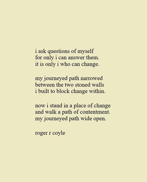 Some call me son, brother, godfather, cousin, uncle, writer, author, veteran, and friend. That may be true, but mostly I am me - a unique human being who has run the race of life through many different forests, down many roaring rivers and along some tangled paths. All in all it has been a good journey of growth and expansion of self. I am a lover of family, animals, food, laughs, poetry, books, compassionate people and chasing the light. My first journey into writing is Quiet Thoughts: Written Reflections. It is a book of poems and reflections - a small flicker of light into my life journey. I currently reside in Emmaus, PA and enjoy all that the Lehigh Valley has to offer. View all posts by rogerrcoyle