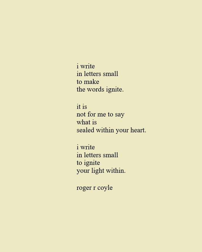 Some call me son, brother, godfather, cousin, uncle, writer, author, veteran, and friend. That may be true, but mostly I am me - a unique human being who has run the race of life through many different forests, down many roaring rivers and along some tangled paths. All in all it has been a good journey of growth and expansion of self. I am a lover of family, animals, food, laughs, poetry, books, compassionate people and chasing the light. My first journey into writing is Quiet Thoughts: Written Reflections. It is a book of poems and reflections - a small flicker of light into my life journey. I currently reside in Emmaus, PA and enjoy all that the Lehigh Valley has to offer. View all posts by rogerrcoyle