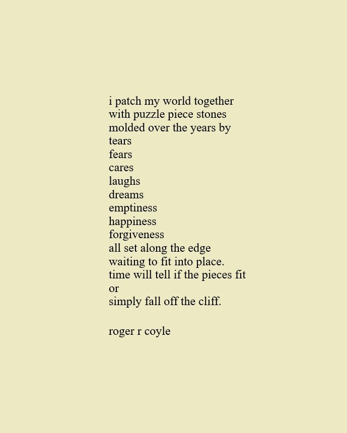 Some call me son, brother, godfather, cousin, uncle, writer, author, veteran, and friend. That may be true, but mostly I am me - a unique human being who has run the race of life through many different forests, down many roaring rivers and along some tangled paths. All in all it has been a good journey of growth and expansion of self. I am a lover of family, animals, food, laughs, poetry, books, compassionate people and chasing the light. My first journey into writing is Quiet Thoughts: Written Reflections. It is a book of poems and reflections - a small flicker of light into my life journey. I currently reside in Emmaus, PA and enjoy all that the Lehigh Valley has to offer. View all posts by rogerrcoyle