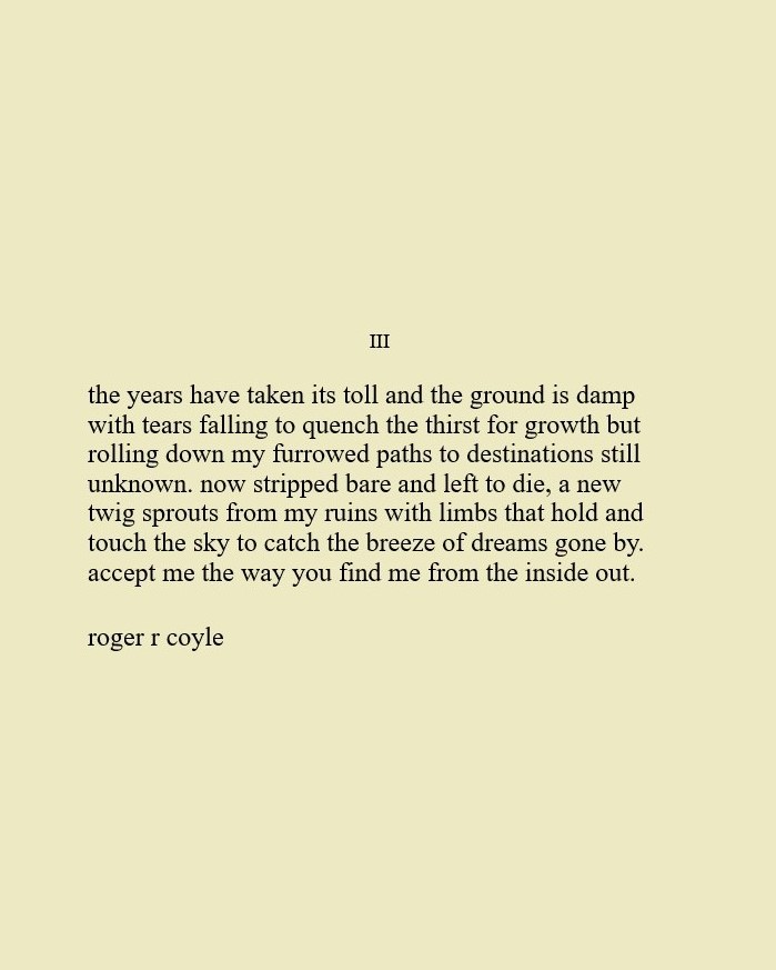 Some call me son, brother, godfather, cousin, uncle, writer, author, veteran, and friend. That may be true, but mostly I am me - a unique human being who has run the race of life through many different forests, down many roaring rivers and along some tangled paths. All in all it has been a good journey of growth and expansion of self. I am a lover of family, animals, food, laughs, poetry, books, compassionate people and chasing the light. My first journey into writing is Quiet Thoughts: Written Reflections. It is a book of poems and reflections - a small flicker of light into my life journey. I currently reside in Emmaus, PA and enjoy all that the Lehigh Valley has to offer. View all posts by rogerrcoyle