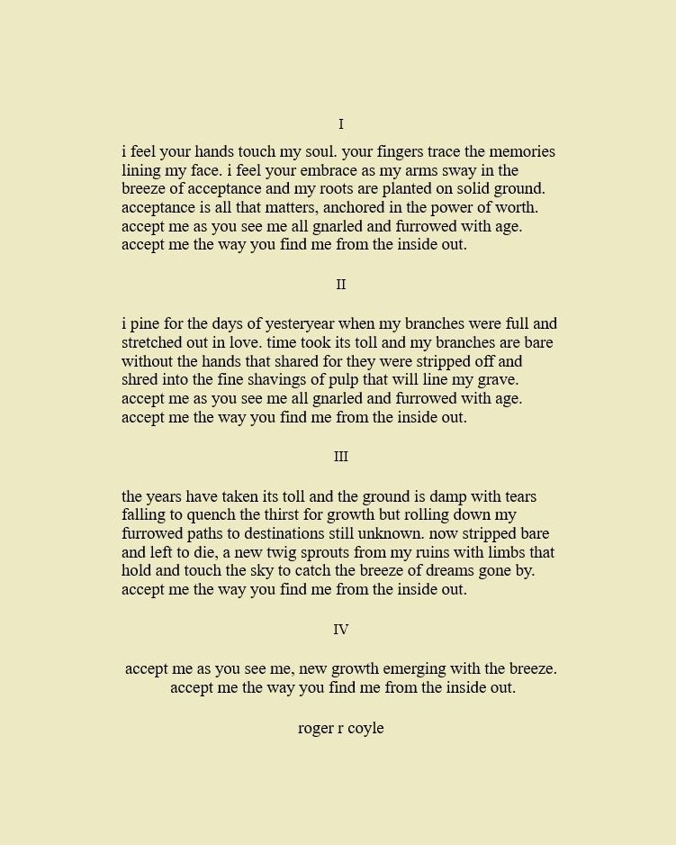 Some call me son, brother, godfather, cousin, uncle, writer, author, veteran, and friend. That may be true, but mostly I am me - a unique human being who has run the race of life through many different forests, down many roaring rivers and along some tangled paths. All in all it has been a good journey of growth and expansion of self. I am a lover of family, animals, food, laughs, poetry, books, compassionate people and chasing the light. My first journey into writing is Quiet Thoughts: Written Reflections. It is a book of poems and reflections - a small flicker of light into my life journey. I currently reside in Emmaus, PA and enjoy all that the Lehigh Valley has to offer. View all posts by rogerrcoyle