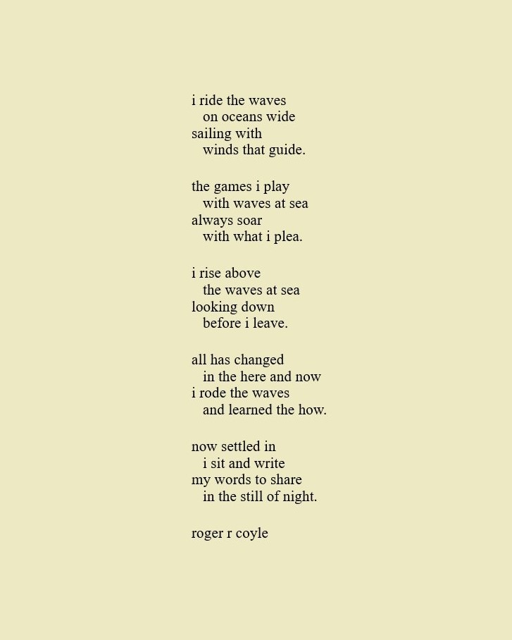 Some call me son, brother, godfather, cousin, uncle, writer, author, veteran, and friend. That may be true, but mostly I am me - a unique human being who has run the race of life through many different forests, down many roaring rivers and along some tangled paths. All in all it has been a good journey of growth and expansion of self. I am a lover of family, animals, food, laughs, poetry, books, compassionate people and chasing the light. My first journey into writing is Quiet Thoughts: Written Reflections. It is a book of poems and reflections - a small flicker of light into my life journey. I currently reside in Emmaus, PA and enjoy all that the Lehigh Valley has to offer. View all posts by rogerrcoyle