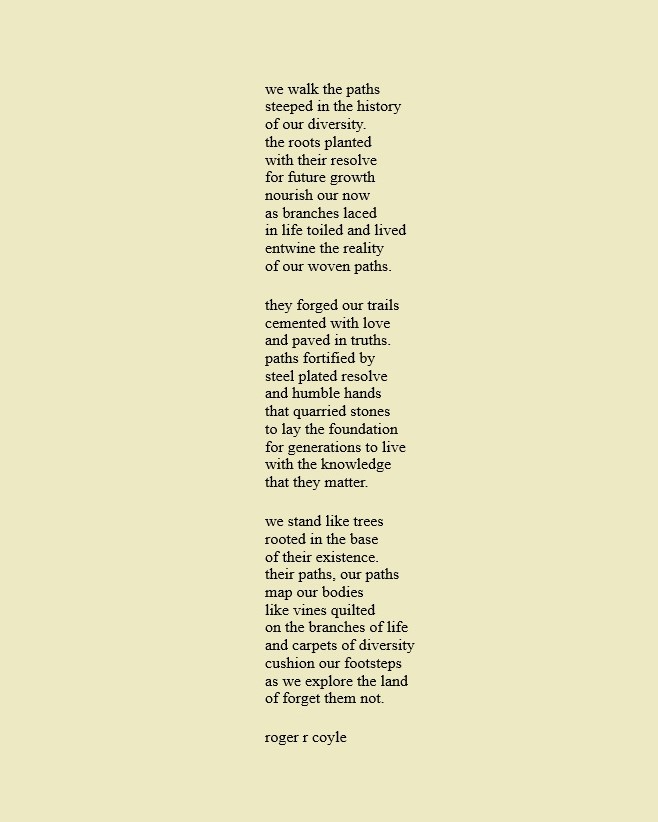 Some call me son, brother, godfather, cousin, uncle, writer, author, veteran, and friend. That may be true, but mostly I am me - a unique human being who has run the race of life through many different forests, down many roaring rivers and along some tangled paths. All in all it has been a good journey of growth and expansion of self. I am a lover of family, animals, food, laughs, poetry, books, compassionate people and chasing the light. My first journey into writing is Quiet Thoughts: Written Reflections. It is a book of poems and reflections - a small flicker of light into my life journey. I currently reside in Emmaus, PA and enjoy all that the Lehigh Valley has to offer. View all posts by rogerrcoyle