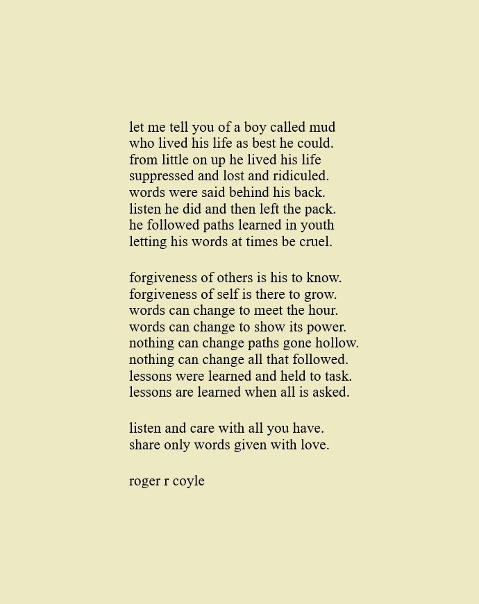 Some call me son, brother, godfather, cousin, uncle, writer, author, veteran, and friend. That may be true, but mostly I am me - a unique human being who has run the race of life through many different forests, down many roaring rivers and along some tangled paths. All in all it has been a good journey of growth and expansion of self. I am a lover of family, animals, food, laughs, poetry, books, compassionate people and chasing the light. My first journey into writing is Quiet Thoughts: Written Reflections. It is a book of poems and reflections - a small flicker of light into my life journey. I currently reside in Emmaus, PA and enjoy all that the Lehigh Valley has to offer. View all posts by rogerrcoyle