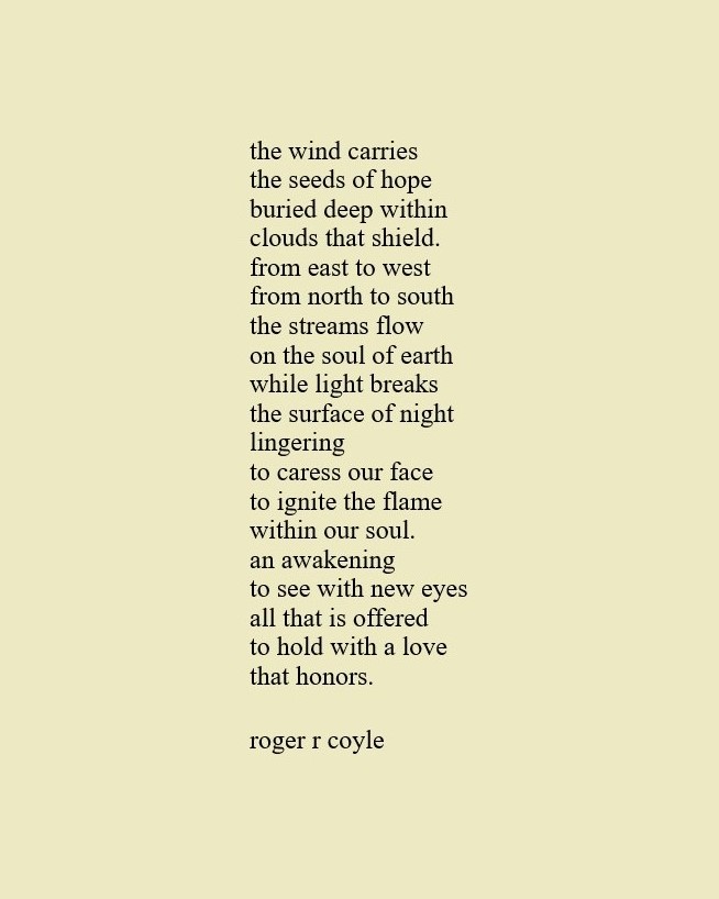 Some call me son, brother, godfather, cousin, uncle, writer, author, veteran, and friend. That may be true, but mostly I am me - a unique human being who has run the race of life through many different forests, down many roaring rivers and along some tangled paths. All in all it has been a good journey of growth and expansion of self. I am a lover of family, animals, food, laughs, poetry, books, compassionate people and chasing the light. My first journey into writing is Quiet Thoughts: Written Reflections. It is a book of poems and reflections - a small flicker of light into my life journey. I currently reside in Emmaus, PA and enjoy all that the Lehigh Valley has to offer. View all posts by rogerrcoyle