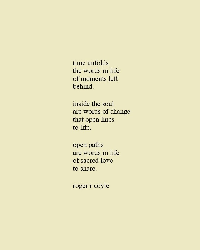 Some call me son, brother, godfather, cousin, uncle, writer, author, veteran, and friend. That may be true, but mostly I am me - a unique human being who has run the race of life through many different forests, down many roaring rivers and along some tangled paths. All in all it has been a good journey of growth and expansion of self. I am a lover of family, animals, food, laughs, poetry, books, compassionate people and chasing the light. My first journey into writing is Quiet Thoughts: Written Reflections. It is a book of poems and reflections - a small flicker of light into my life journey. I currently reside in Emmaus, PA and enjoy all that the Lehigh Valley has to offer. View all posts by rogerrcoyle