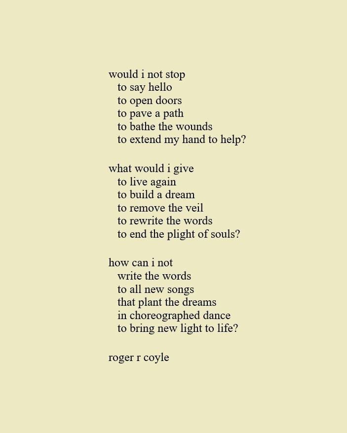 Some call me son, brother, godfather, cousin, uncle, writer, author, veteran, and friend. That may be true, but mostly I am me - a unique human being who has run the race of life through many different forests, down many roaring rivers and along some tangled paths. All in all it has been a good journey of growth and expansion of self. I am a lover of family, animals, food, laughs, poetry, books, compassionate people and chasing the light. My first journey into writing is Quiet Thoughts: Written Reflections. It is a book of poems and reflections - a small flicker of light into my life journey. I currently reside in Emmaus, PA and enjoy all that the Lehigh Valley has to offer. View all posts by rogerrcoyle