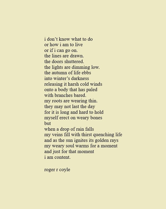 Some call me son, brother, godfather, cousin, uncle, writer, author, veteran, and friend. That may be true, but mostly I am me - a unique human being who has run the race of life through many different forests, down many roaring rivers and along some tangled paths. All in all it has been a good journey of growth and expansion of self. I am a lover of family, animals, food, laughs, poetry, books, compassionate people and chasing the light. My first journey into writing is Quiet Thoughts: Written Reflections. It is a book of poems and reflections - a small flicker of light into my life journey. I currently reside in Emmaus, PA and enjoy all that the Lehigh Valley has to offer. View all posts by rogerrcoyle