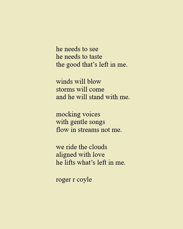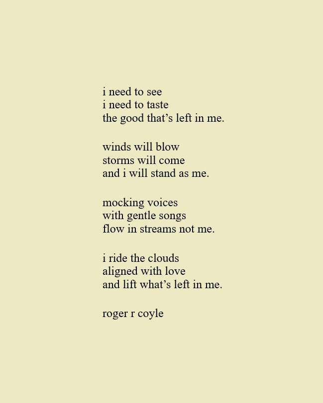 Some call me son, brother, godfather, cousin, uncle, writer, author, veteran, and friend. That may be true, but mostly I am me - a unique human being who has run the race of life through many different forests, down many roaring rivers and along some tangled paths. All in all it has been a good journey of growth and expansion of self. I am a lover of family, animals, food, laughs, poetry, books, compassionate people and chasing the light. My first journey into writing is Quiet Thoughts: Written Reflections. It is a book of poems and reflections - a small flicker of light into my life journey. I currently reside in Emmaus, PA and enjoy all that the Lehigh Valley has to offer. View all posts by rogerrcoyle