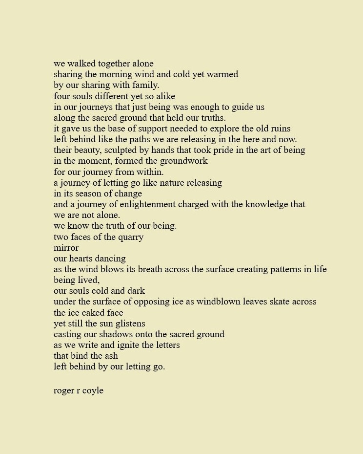 Some call me son, brother, godfather, cousin, uncle, writer, author, veteran, and friend. That may be true, but mostly I am me - a unique human being who has run the race of life through many different forests, down many roaring rivers and along some tangled paths. All in all it has been a good journey of growth and expansion of self. I am a lover of family, animals, food, laughs, poetry, books, compassionate people and chasing the light. My first journey into writing is Quiet Thoughts: Written Reflections. It is a book of poems and reflections - a small flicker of light into my life journey. I currently reside in Emmaus, PA and enjoy all that the Lehigh Valley has to offer. View all posts by rogerrcoyle
