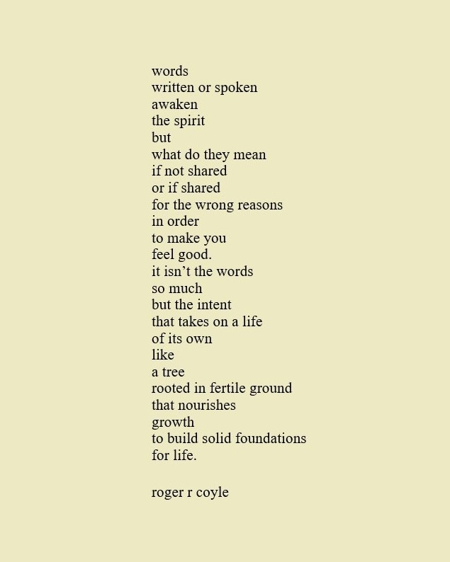 Some call me son, brother, godfather, cousin, uncle, writer, author, veteran, and friend. That may be true, but mostly I am me - a unique human being who has run the race of life through many different forests, down many roaring rivers and along some tangled paths. All in all it has been a good journey of growth and expansion of self. I am a lover of family, animals, food, laughs, poetry, books, compassionate people and chasing the light. My first journey into writing is Quiet Thoughts: Written Reflections. It is a book of poems and reflections - a small flicker of light into my life journey. I currently reside in Emmaus, PA and enjoy all that the Lehigh Valley has to offer. View all posts by rogerrcoyle