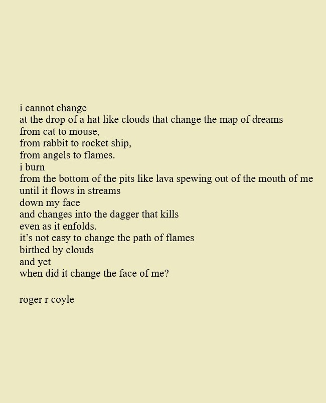 Some call me son, brother, godfather, cousin, uncle, writer, author, veteran, and friend. That may be true, but mostly I am me - a unique human being who has run the race of life through many different forests, down many roaring rivers and along some tangled paths. All in all it has been a good journey of growth and expansion of self. I am a lover of family, animals, food, laughs, poetry, books, compassionate people and chasing the light. My first journey into writing is Quiet Thoughts: Written Reflections. It is a book of poems and reflections - a small flicker of light into my life journey. I currently reside in Emmaus, PA and enjoy all that the Lehigh Valley has to offer. View all posts by rogerrcoyle