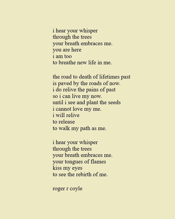 Some call me son, brother, godfather, cousin, uncle, writer, author, veteran, and friend. That may be true, but mostly I am me - a unique human being who has run the race of life through many different forests, down many roaring rivers and along some tangled paths. All in all it has been a good journey of growth and expansion of self. I am a lover of family, animals, food, laughs, poetry, books, compassionate people and chasing the light. My first journey into writing is Quiet Thoughts: Written Reflections. It is a book of poems and reflections - a small flicker of light into my life journey. I currently reside in Emmaus, PA and enjoy all that the Lehigh Valley has to offer. View all posts by rogerrcoyle