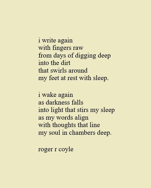 Some call me son, brother, godfather, cousin, uncle, writer, author, veteran, and friend. That may be true, but mostly I am me - a unique human being who has run the race of life through many different forests, down many roaring rivers and along some tangled paths. All in all it has been a good journey of growth and expansion of self. I am a lover of family, animals, food, laughs, poetry, books, compassionate people and chasing the light. My first journey into writing is Quiet Thoughts: Written Reflections. It is a book of poems and reflections - a small flicker of light into my life journey. I currently reside in Emmaus, PA and enjoy all that the Lehigh Valley has to offer. View all posts by rogerrcoyle