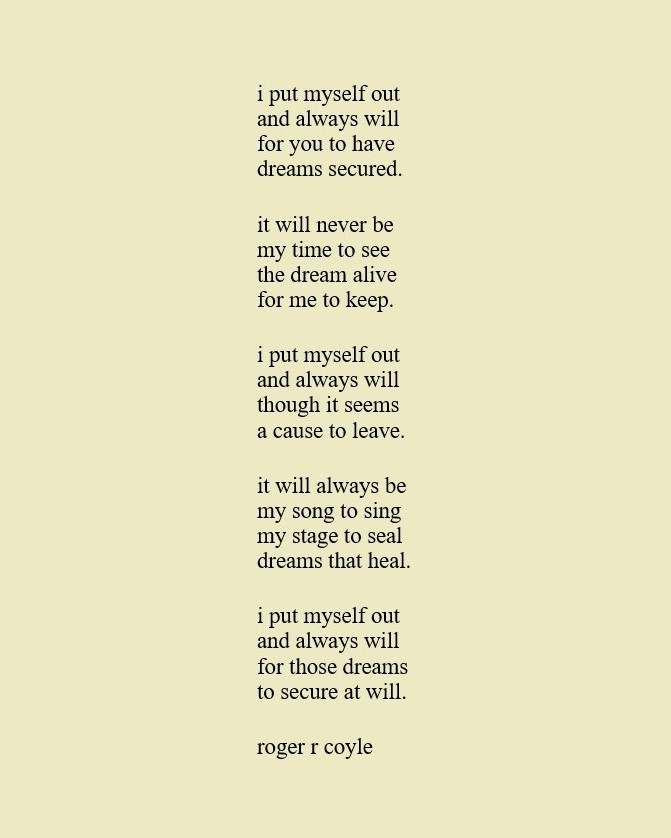 Some call me son, brother, godfather, cousin, uncle, writer, author, veteran, and friend. That may be true, but mostly I am me - a unique human being who has run the race of life through many different forests, down many roaring rivers and along some tangled paths. All in all it has been a good journey of growth and expansion of self. I am a lover of family, animals, food, laughs, poetry, books, compassionate people and chasing the light. My first journey into writing is Quiet Thoughts: Written Reflections. It is a book of poems and reflections - a small flicker of light into my life journey. I currently reside in Emmaus, PA and enjoy all that the Lehigh Valley has to offer. View all posts by rogerrcoyle