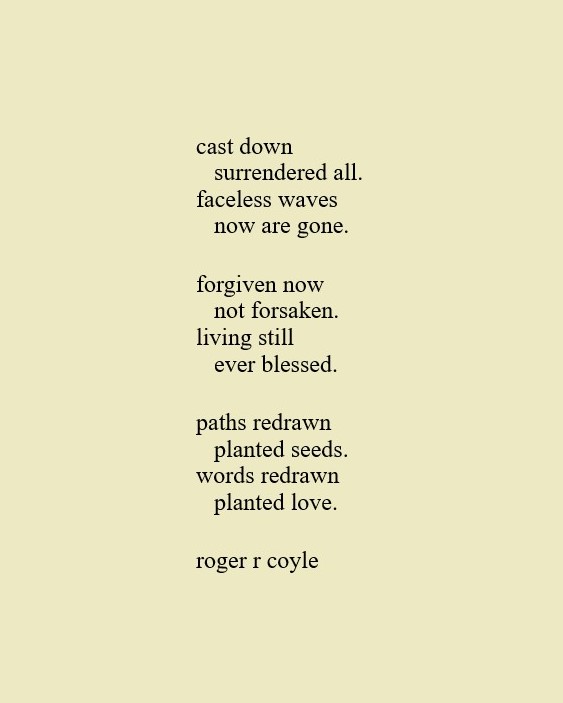 Some call me son, brother, godfather, cousin, uncle, writer, author, veteran, and friend. That may be true, but mostly I am me - a unique human being who has run the race of life through many different forests, down many roaring rivers and along some tangled paths. All in all it has been a good journey of growth and expansion of self. I am a lover of family, animals, food, laughs, poetry, books, compassionate people and chasing the light. My first journey into writing is Quiet Thoughts: Written Reflections. It is a book of poems and reflections - a small flicker of light into my life journey. I currently reside in Emmaus, PA and enjoy all that the Lehigh Valley has to offer. View all posts by rogerrcoyle