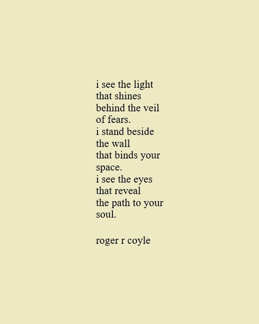Some call me son, brother, godfather, cousin, uncle, writer, author, veteran, and friend. That may be true, but mostly I am me - a unique human being who has run the race of life through many different forests, down many roaring rivers and along some tangled paths. All in all it has been a good journey of growth and expansion of self. I am a lover of family, animals, food, laughs, poetry, books, compassionate people and chasing the light. My first journey into writing is Quiet Thoughts: Written Reflections. It is a book of poems and reflections - a small flicker of light into my life journey. I currently reside in Emmaus, PA and enjoy all that the Lehigh Valley has to offer. View all posts by rogerrcoyle