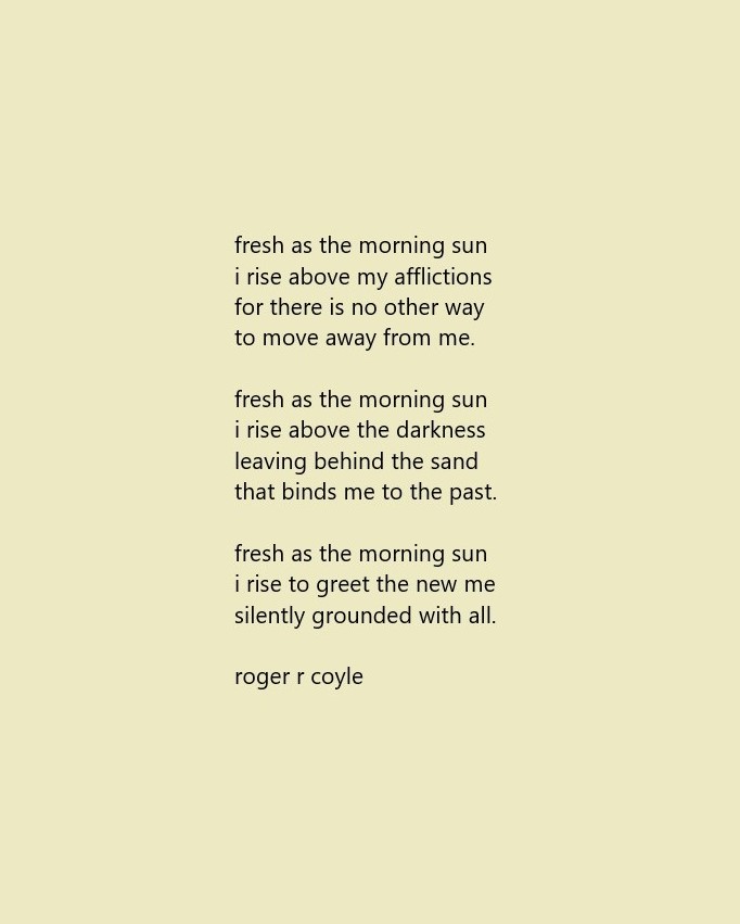 Some call me son, brother, godfather, cousin, uncle, writer, author, veteran, and friend. That may be true, but mostly I am me - a unique human being who has run the race of life through many different forests, down many roaring rivers and along some tangled paths. All in all it has been a good journey of growth and expansion of self. I am a lover of family, animals, food, laughs, poetry, books, compassionate people and chasing the light. My first journey into writing is Quiet Thoughts: Written Reflections. It is a book of poems and reflections - a small flicker of light into my life journey. I currently reside in Emmaus, PA and enjoy all that the Lehigh Valley has to offer. View all posts by rogerrcoyle