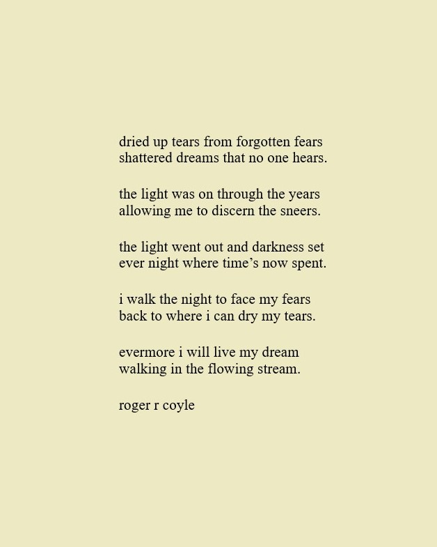Some call me son, brother, godfather, cousin, uncle, writer, author, veteran, and friend. That may be true, but mostly I am me - a unique human being who has run the race of life through many different forests, down many roaring rivers and along some tangled paths. All in all it has been a good journey of growth and expansion of self. I am a lover of family, animals, food, laughs, poetry, books, compassionate people and chasing the light. My first journey into writing is Quiet Thoughts: Written Reflections. It is a book of poems and reflections - a small flicker of light into my life journey. I currently reside in Emmaus, PA and enjoy all that the Lehigh Valley has to offer. View all posts by rogerrcoyle