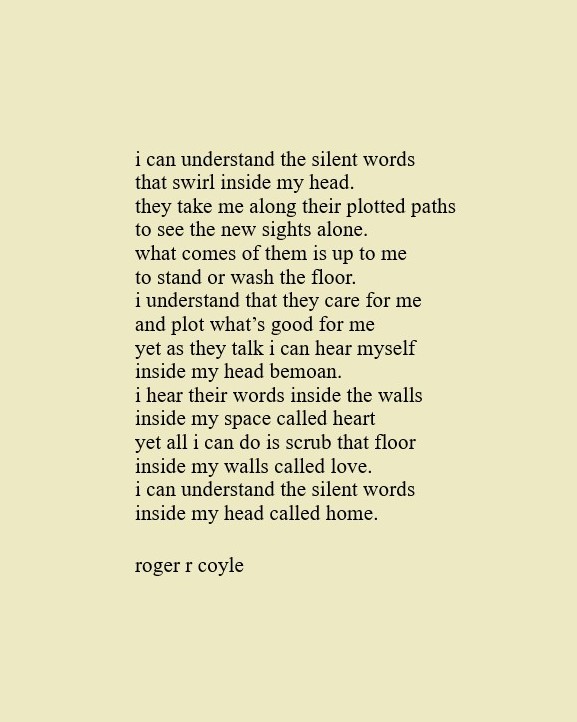 Some call me son, brother, godfather, cousin, uncle, writer, author, veteran, and friend. That may be true, but mostly I am me - a unique human being who has run the race of life through many different forests, down many roaring rivers and along some tangled paths. All in all it has been a good journey of growth and expansion of self. I am a lover of family, animals, food, laughs, poetry, books, compassionate people and chasing the light. My first journey into writing is Quiet Thoughts: Written Reflections. It is a book of poems and reflections - a small flicker of light into my life journey. I currently reside in Emmaus, PA and enjoy all that the Lehigh Valley has to offer. View all posts by rogerrcoyle