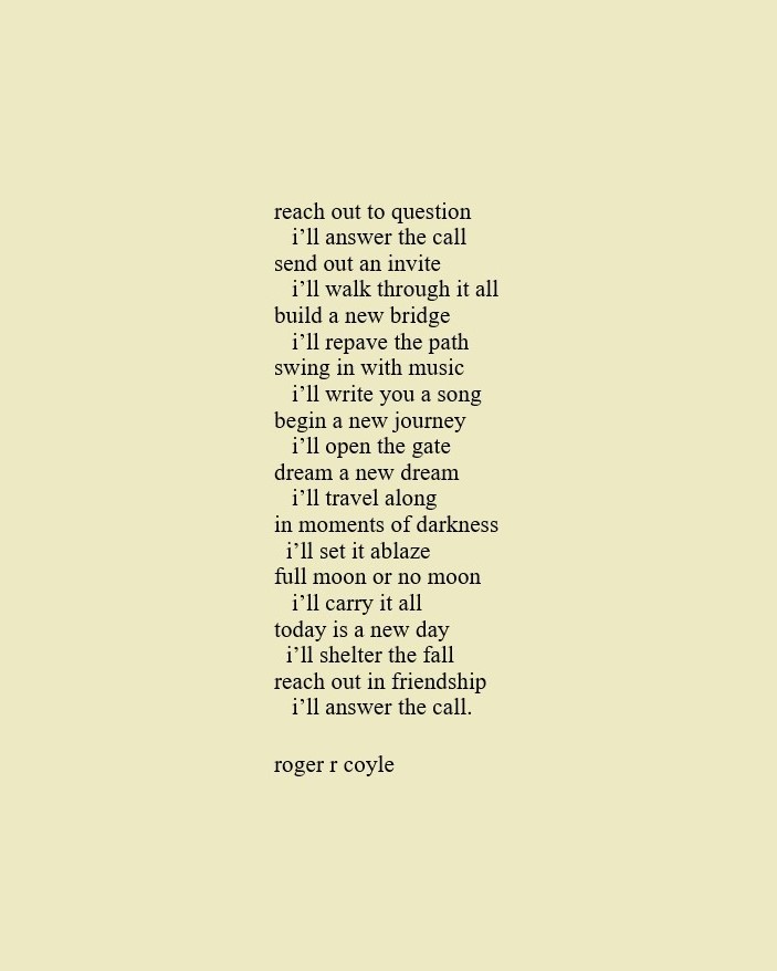 Some call me son, brother, godfather, cousin, uncle, writer, author, veteran, and friend. That may be true, but mostly I am me - a unique human being who has run the race of life through many different forests, down many roaring rivers and along some tangled paths. All in all it has been a good journey of growth and expansion of self. I am a lover of family, animals, food, laughs, poetry, books, compassionate people and chasing the light. My first journey into writing is Quiet Thoughts: Written Reflections. It is a book of poems and reflections - a small flicker of light into my life journey. I currently reside in Emmaus, PA and enjoy all that the Lehigh Valley has to offer. View all posts by rogerrcoyle