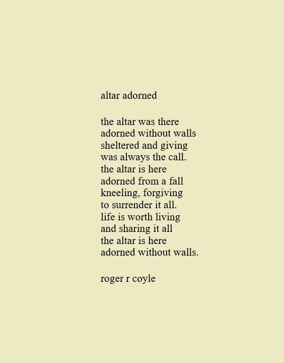 Some call me son, brother, godfather, cousin, uncle, writer, author, veteran, and friend. That may be true, but mostly I am me - a unique human being who has run the race of life through many different forests, down many roaring rivers and along some tangled paths. All in all it has been a good journey of growth and expansion of self. I am a lover of family, animals, food, laughs, poetry, books, compassionate people and chasing the light. My first journey into writing is Quiet Thoughts: Written Reflections. It is a book of poems and reflections - a small flicker of light into my life journey. I currently reside in Emmaus, PA and enjoy all that the Lehigh Valley has to offer. View all posts by rogerrcoyle