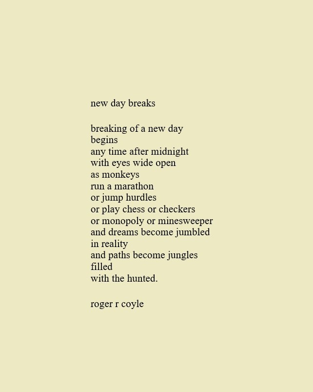 Some call me son, brother, godfather, cousin, uncle, writer, author, veteran, and friend. That may be true, but mostly I am me - a unique human being who has run the race of life through many different forests, down many roaring rivers and along some tangled paths. All in all it has been a good journey of growth and expansion of self. I am a lover of family, animals, food, laughs, poetry, books, compassionate people and chasing the light. My first journey into writing is Quiet Thoughts: Written Reflections. It is a book of poems and reflections - a small flicker of light into my life journey. I currently reside in Emmaus, PA and enjoy all that the Lehigh Valley has to offer. View all posts by rogerrcoyle