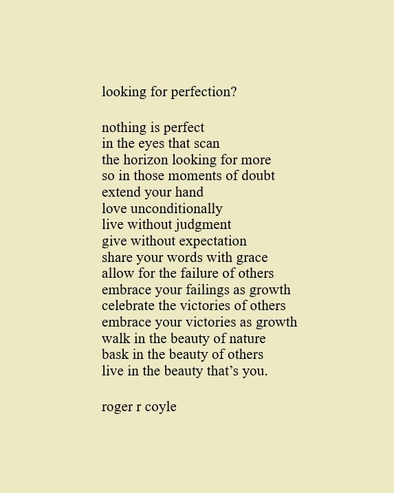 Some call me son, brother, godfather, cousin, uncle, writer, author, veteran, and friend. That may be true, but mostly I am me - a unique human being who has run the race of life through many different forests, down many roaring rivers and along some tangled paths. All in all it has been a good journey of growth and expansion of self. I am a lover of family, animals, food, laughs, poetry, books, compassionate people and chasing the light. My first journey into writing is Quiet Thoughts: Written Reflections. It is a book of poems and reflections - a small flicker of light into my life journey. I currently reside in Emmaus, PA and enjoy all that the Lehigh Valley has to offer. View all posts by rogerrcoyle