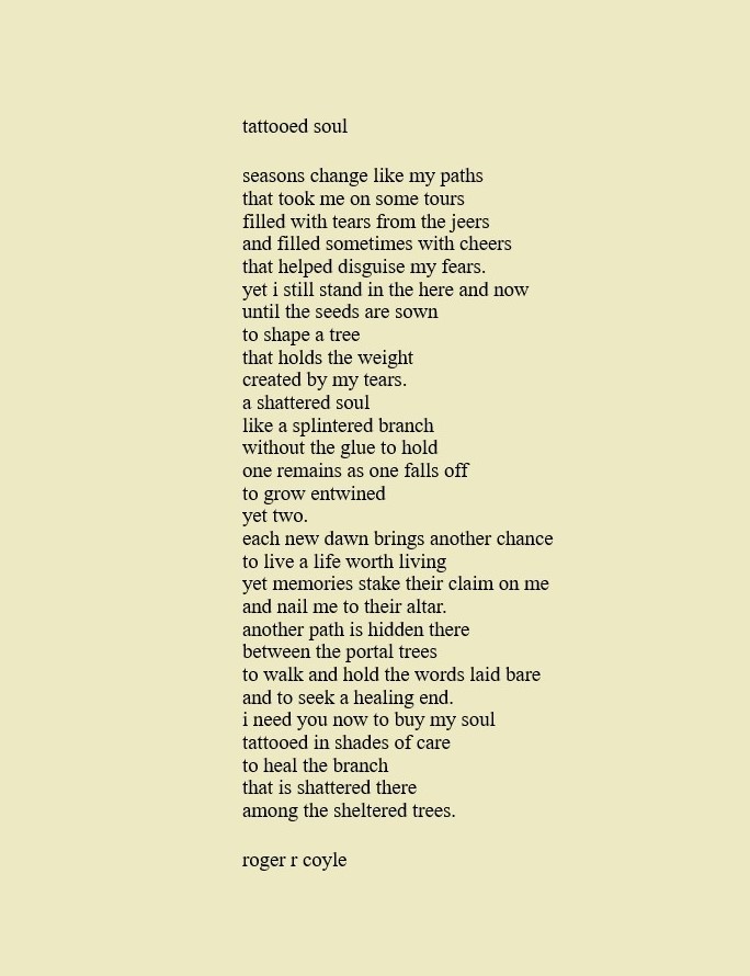 Some call me son, brother, godfather, cousin, uncle, writer, author, veteran, and friend. That may be true, but mostly I am me - a unique human being who has run the race of life through many different forests, down many roaring rivers and along some tangled paths. All in all it has been a good journey of growth and expansion of self. I am a lover of family, animals, food, laughs, poetry, books, compassionate people and chasing the light. My first journey into writing is Quiet Thoughts: Written Reflections. It is a book of poems and reflections - a small flicker of light into my life journey. I currently reside in Emmaus, PA and enjoy all that the Lehigh Valley has to offer. View all posts by rogerrcoyle