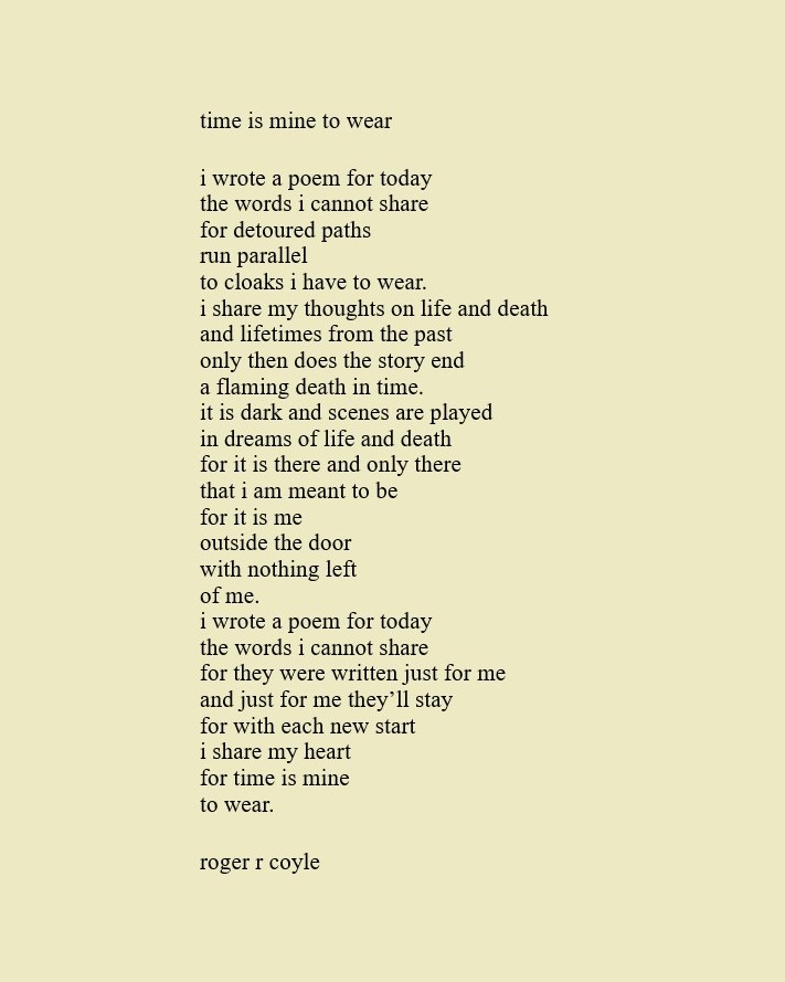 Some call me son, brother, godfather, cousin, uncle, writer, author, veteran, and friend. That may be true, but mostly I am me - a unique human being who has run the race of life through many different forests, down many roaring rivers and along some tangled paths. All in all it has been a good journey of growth and expansion of self. I am a lover of family, animals, food, laughs, poetry, books, compassionate people and chasing the light. My first journey into writing is Quiet Thoughts: Written Reflections. It is a book of poems and reflections - a small flicker of light into my life journey. I currently reside in Emmaus, PA and enjoy all that the Lehigh Valley has to offer. View all posts by rogerrcoyle