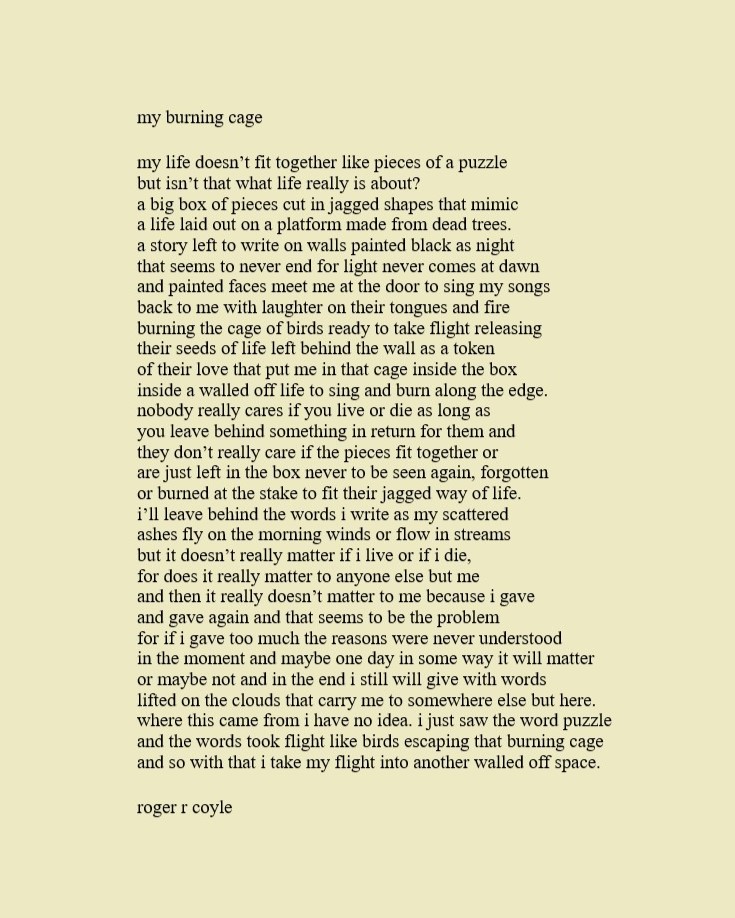 Some call me son, brother, godfather, cousin, uncle, writer, author, veteran, and friend. That may be true, but mostly I am me - a unique human being who has run the race of life through many different forests, down many roaring rivers and along some tangled paths. All in all it has been a good journey of growth and expansion of self. I am a lover of family, animals, food, laughs, poetry, books, compassionate people and chasing the light. My first journey into writing is Quiet Thoughts: Written Reflections. It is a book of poems and reflections - a small flicker of light into my life journey. I currently reside in Emmaus, PA and enjoy all that the Lehigh Valley has to offer. View all posts by rogerrcoyle
