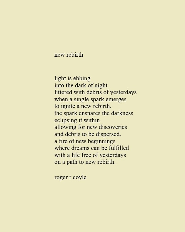 Some call me son, brother, godfather, cousin, uncle, writer, author, veteran, and friend. That may be true, but mostly I am me - a unique human being who has run the race of life through many different forests, down many roaring rivers and along some tangled paths. All in all it has been a good journey of growth and expansion of self. I am a lover of family, animals, food, laughs, poetry, books, compassionate people and chasing the light. My first journey into writing is Quiet Thoughts: Written Reflections. It is a book of poems and reflections - a small flicker of light into my life journey. I currently reside in Emmaus, PA and enjoy all that the Lehigh Valley has to offer. View all posts by rogerrcoyle