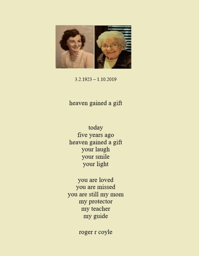 Some call me son, brother, godfather, cousin, uncle, writer, author, veteran, and friend. That may be true, but mostly I am me - a unique human being who has run the race of life through many different forests, down many roaring rivers and along some tangled paths. All in all it has been a good journey of growth and expansion of self. I am a lover of family, animals, food, laughs, poetry, books, compassionate people and chasing the light. My first journey into writing is Quiet Thoughts: Written Reflections. It is a book of poems and reflections - a small flicker of light into my life journey. I currently reside in Emmaus, PA and enjoy all that the Lehigh Valley has to offer. View all posts by rogerrcoyle