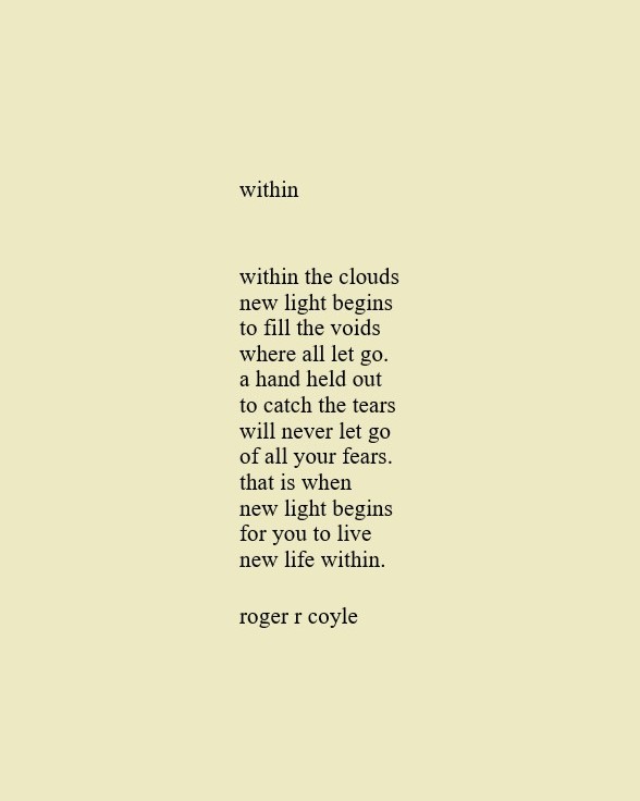 Some call me son, brother, godfather, cousin, uncle, writer, author, veteran, and friend. That may be true, but mostly I am me - a unique human being who has run the race of life through many different forests, down many roaring rivers and along some tangled paths. All in all it has been a good journey of growth and expansion of self. I am a lover of family, animals, food, laughs, poetry, books, compassionate people and chasing the light. My first journey into writing is Quiet Thoughts: Written Reflections. It is a book of poems and reflections - a small flicker of light into my life journey. I currently reside in Emmaus, PA and enjoy all that the Lehigh Valley has to offer. View all posts by rogerrcoyle