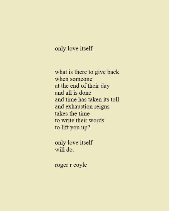 Some call me son, brother, godfather, cousin, uncle, writer, author, veteran, and friend. That may be true, but mostly I am me - a unique human being who has run the race of life through many different forests, down many roaring rivers and along some tangled paths. All in all it has been a good journey of growth and expansion of self. I am a lover of family, animals, food, laughs, poetry, books, compassionate people and chasing the light. My first journey into writing is Quiet Thoughts: Written Reflections. It is a book of poems and reflections - a small flicker of light into my life journey. I currently reside in Emmaus, PA and enjoy all that the Lehigh Valley has to offer. View all posts by rogerrcoyle