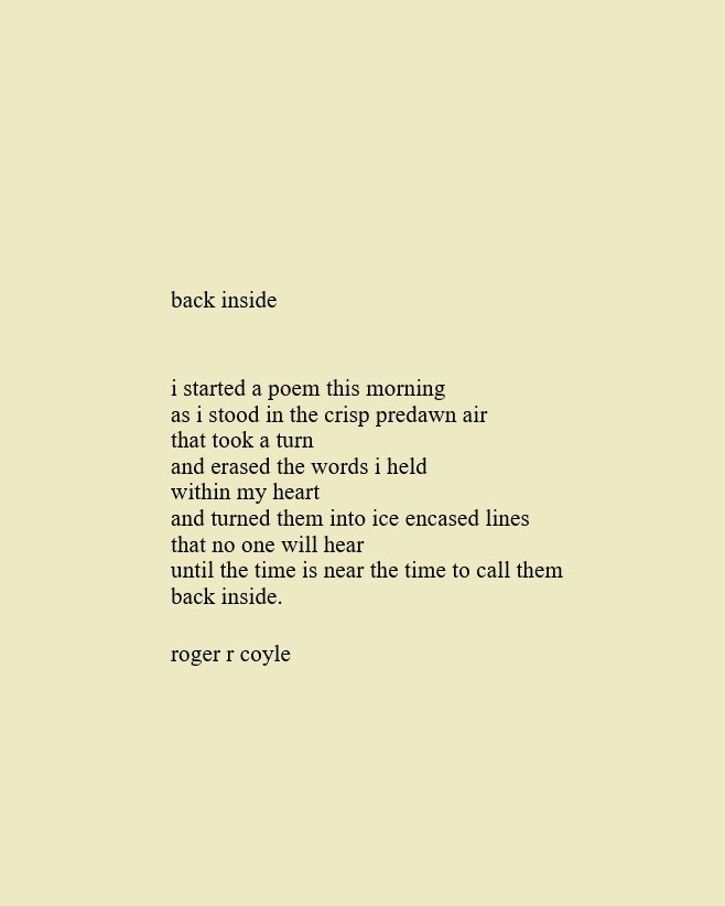 Some call me son, brother, godfather, cousin, uncle, writer, author, veteran, and friend. That may be true, but mostly I am me - a unique human being who has run the race of life through many different forests, down many roaring rivers and along some tangled paths. All in all it has been a good journey of growth and expansion of self. I am a lover of family, animals, food, laughs, poetry, books, compassionate people and chasing the light. My first journey into writing is Quiet Thoughts: Written Reflections. It is a book of poems and reflections - a small flicker of light into my life journey. I currently reside in Emmaus, PA and enjoy all that the Lehigh Valley has to offer. View all posts by rogerrcoyle