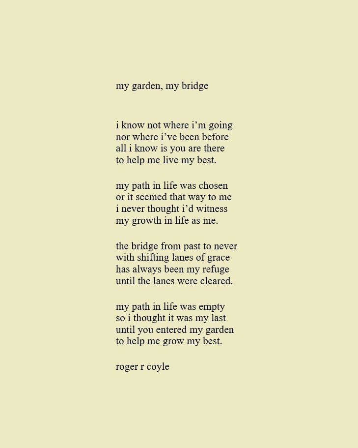 Some call me son, brother, godfather, cousin, uncle, writer, author, veteran, and friend. That may be true, but mostly I am me - a unique human being who has run the race of life through many different forests, down many roaring rivers and along some tangled paths. All in all it has been a good journey of growth and expansion of self. I am a lover of family, animals, food, laughs, poetry, books, compassionate people and chasing the light. My first journey into writing is Quiet Thoughts: Written Reflections. It is a book of poems and reflections - a small flicker of light into my life journey. I currently reside in Emmaus, PA and enjoy all that the Lehigh Valley has to offer. View all posts by rogerrcoyle