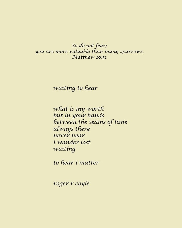 Some call me son, brother, godfather, cousin, uncle, writer, author, veteran, and friend. That may be true, but mostly I am me - a unique human being who has run the race of life through many different forests, down many roaring rivers and along some tangled paths. All in all it has been a good journey of growth and expansion of self. I am a lover of family, animals, food, laughs, poetry, books, compassionate people and chasing the light. My first journey into writing is Quiet Thoughts: Written Reflections. It is a book of poems and reflections - a small flicker of light into my life journey. I currently reside in Emmaus, PA and enjoy all that the Lehigh Valley has to offer. View all posts by rogerrcoyle
