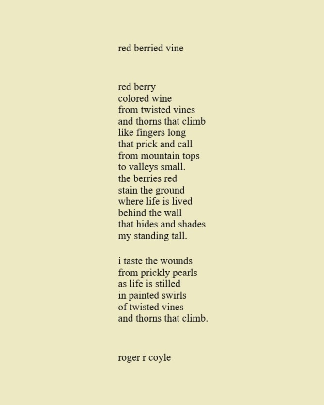 Some call me son, brother, godfather, cousin, uncle, writer, author, veteran, and friend. That may be true, but mostly I am me - a unique human being who has run the race of life through many different forests, down many roaring rivers and along some tangled paths. All in all it has been a good journey of growth and expansion of self. I am a lover of family, animals, food, laughs, poetry, books, compassionate people and chasing the light. My first journey into writing is Quiet Thoughts: Written Reflections. It is a book of poems and reflections - a small flicker of light into my life journey. I currently reside in Emmaus, PA and enjoy all that the Lehigh Valley has to offer. View all posts by rogerrcoyle